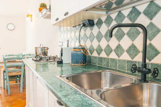 In posizione strategica a 5 minuti dalla famosa spiaggia di Porto pino caratterizzata dalla sua finissima sabbia bianca e dall'acqua cristallina.