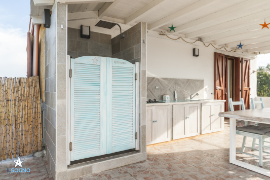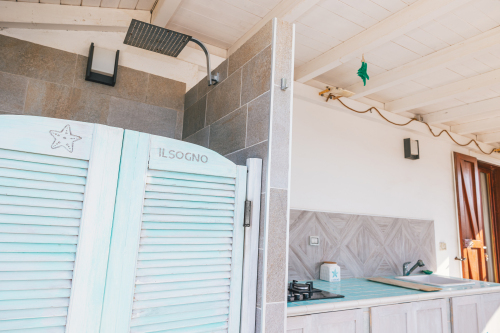 Dispone di : cucina, zona pranzo, barbecue, salotto, solarium e doccia .